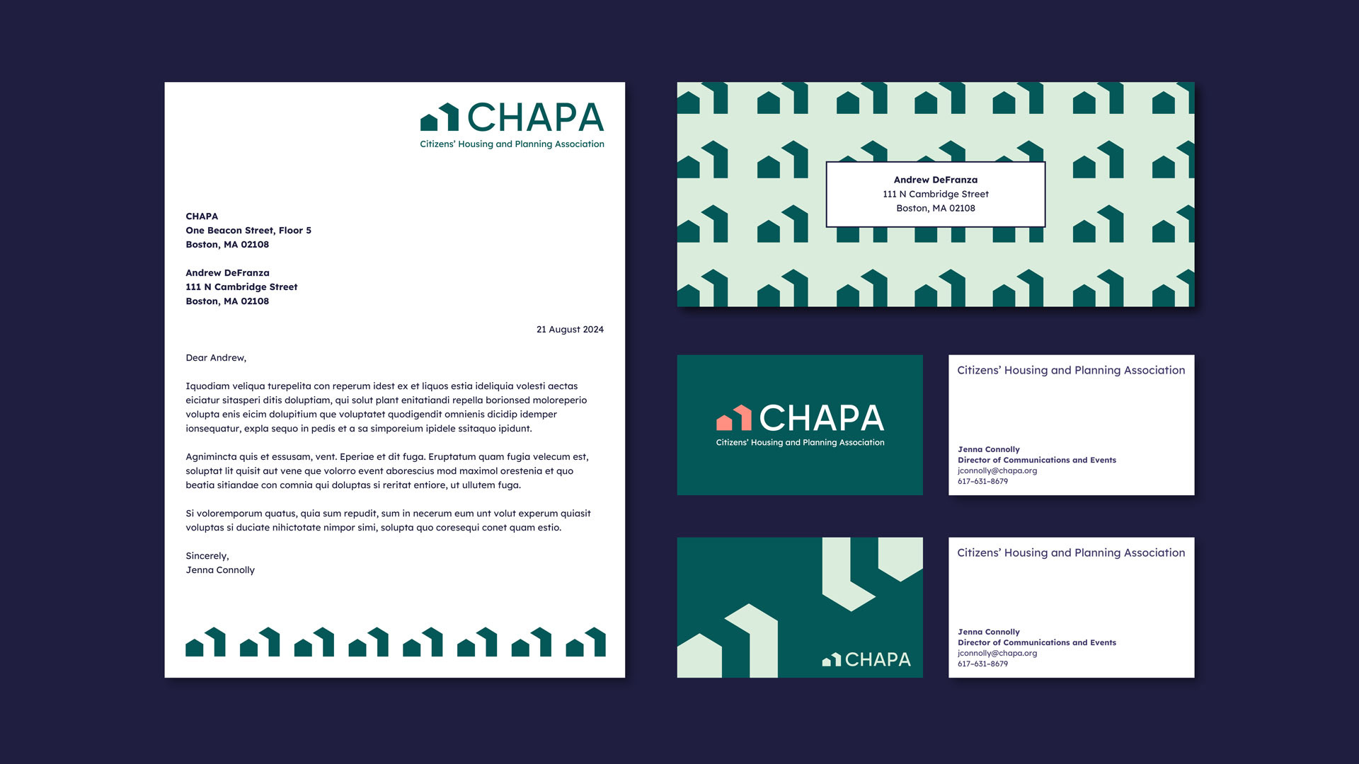 At Minelli, I contributed to the rebrand of CHAPA, a statewide housing advocacy organization dedicated to advancing affordable housing across Massachusetts. As the organization grew in reach and influence, we helped refresh its visual identity to better reflect its role as a connector and advocate for change. Shaped by research and stakeholder insights, the new brand emphasizes clarity, warmth, and accessibility. A welcoming mark, optimistic color palette, and highly legible typography support a confident and human-centered voice, helping CHAPA communicate not just what it does, but why its work matters.