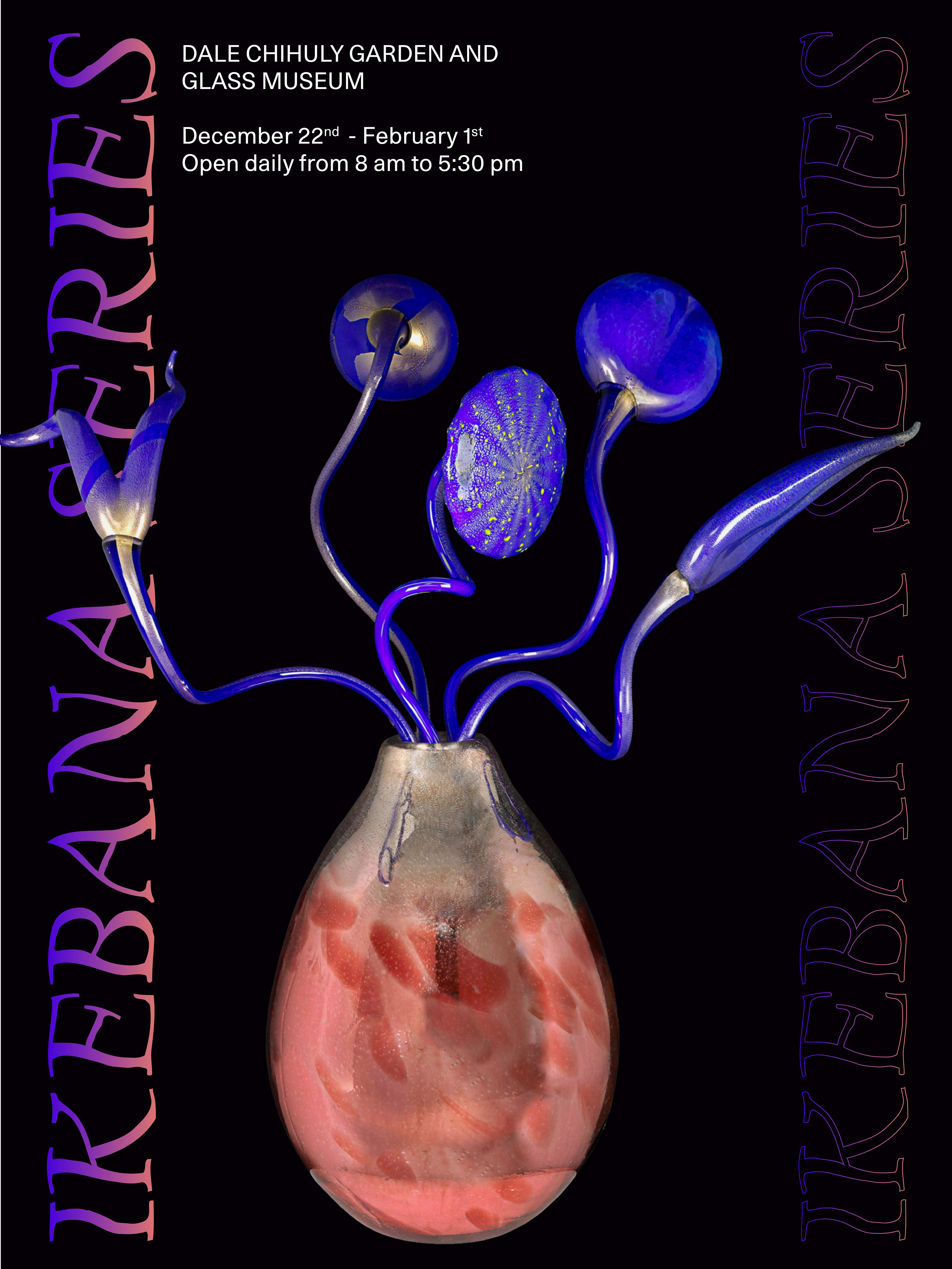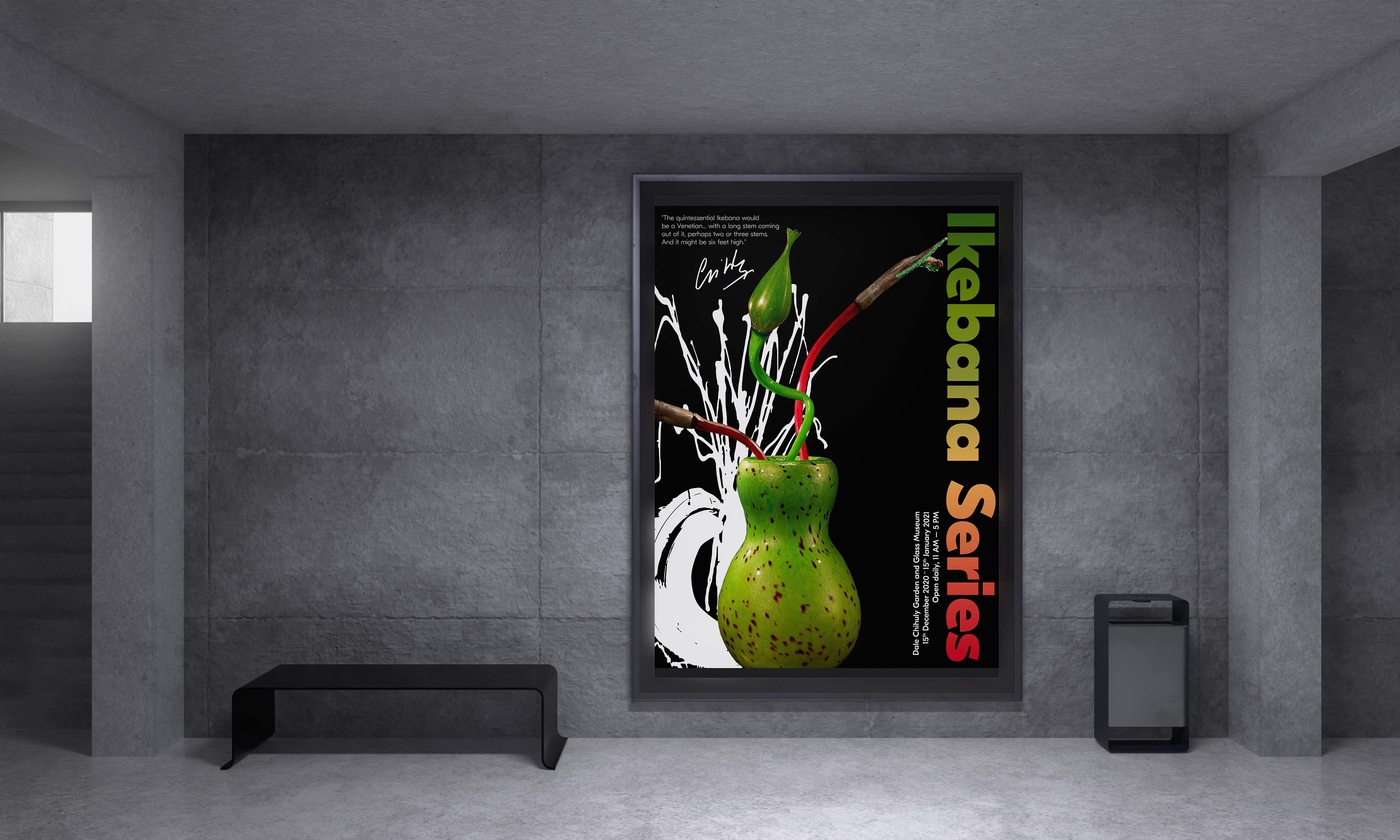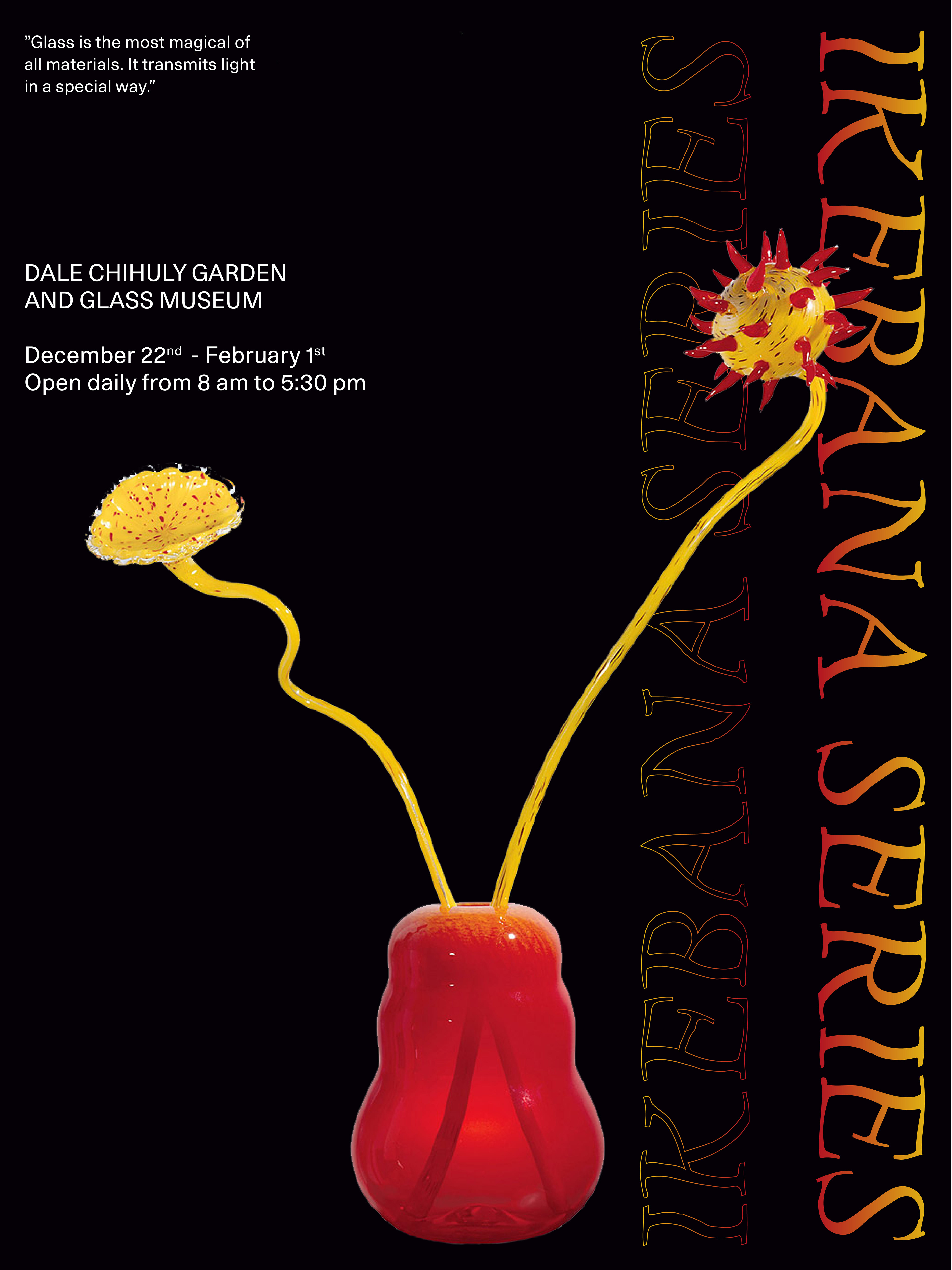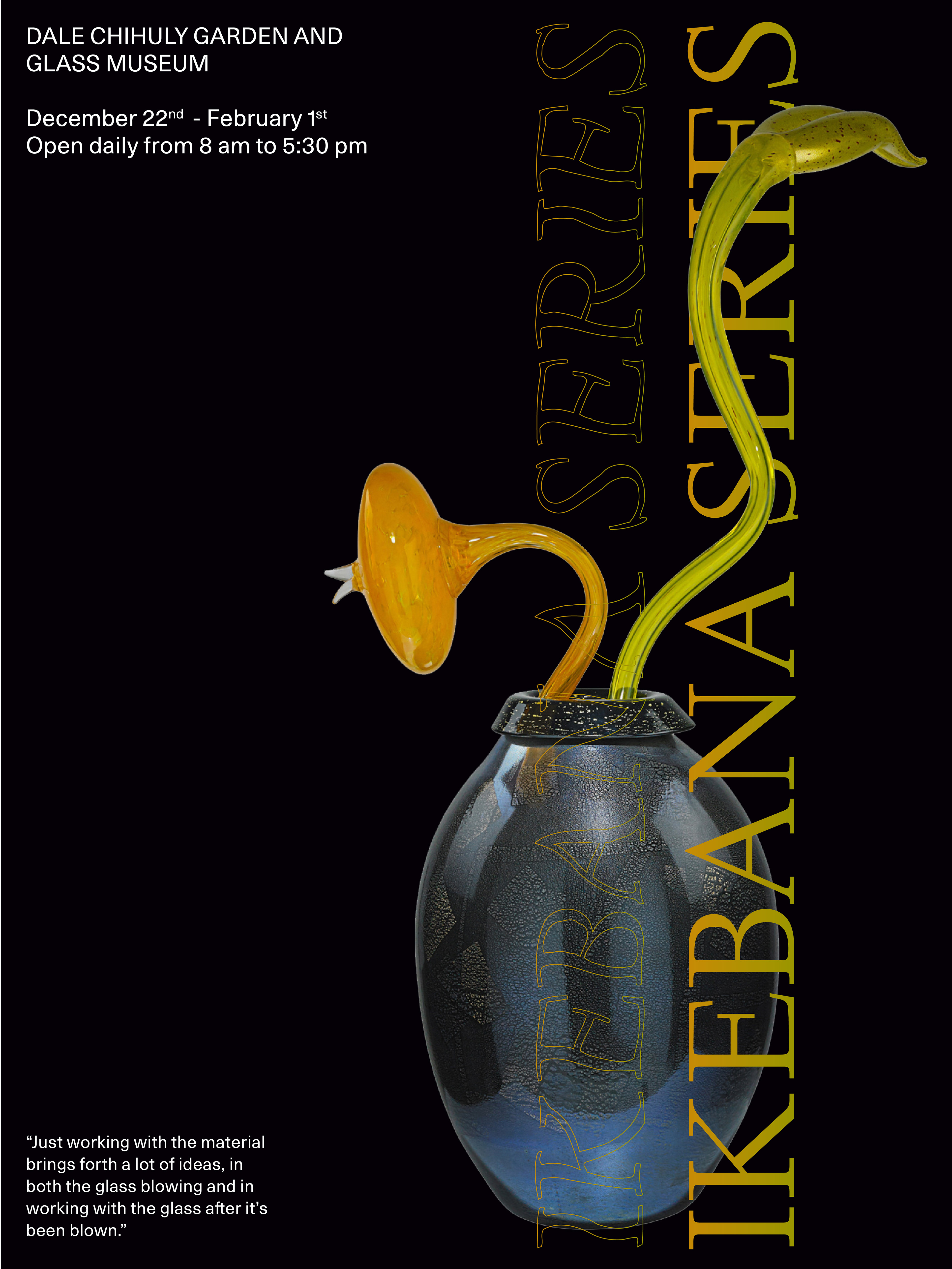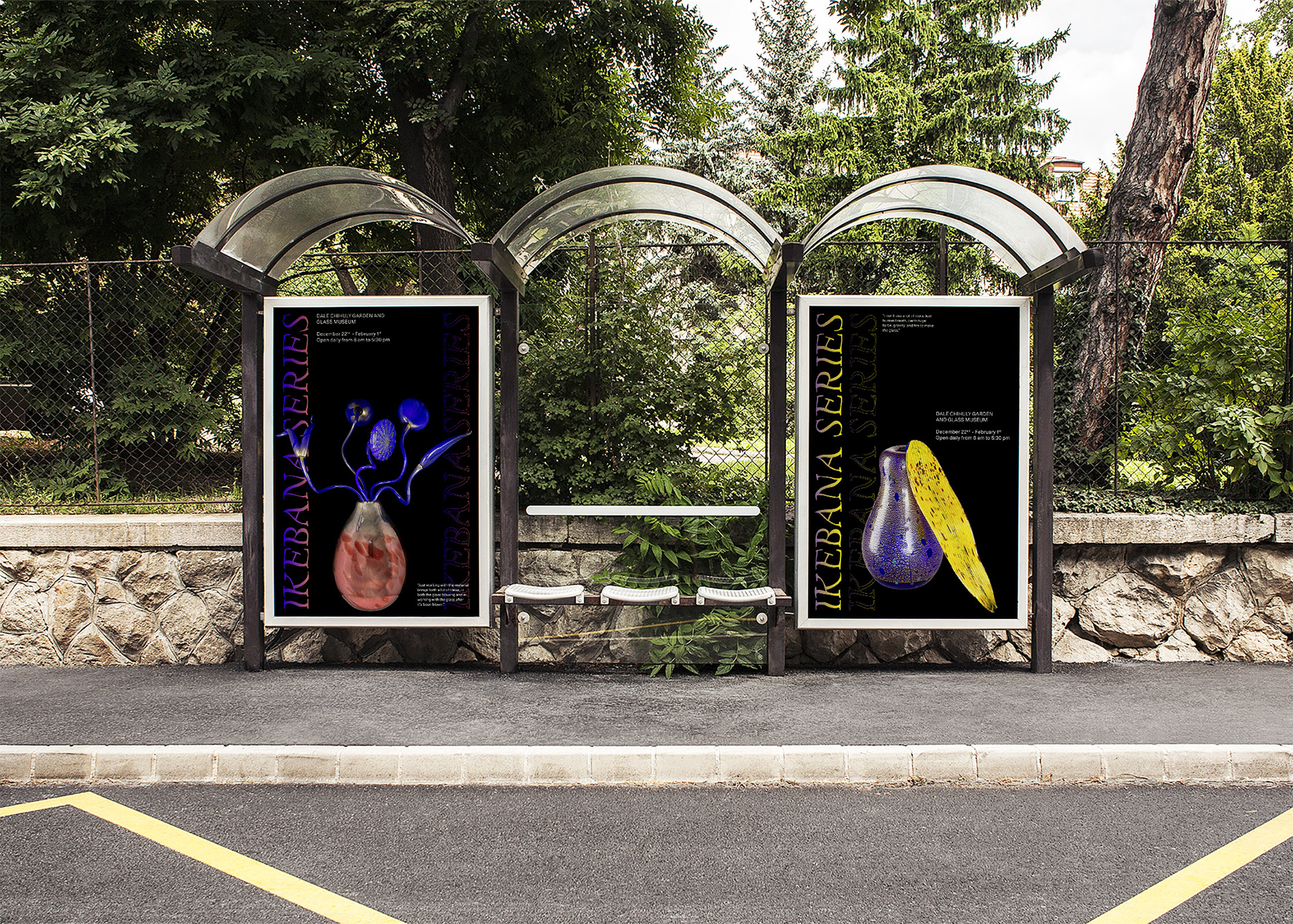 I developed a design system and visuals for an artist's exhibition, focusing on complementing—not overshadowing—his stunning glass sculptures. Color plays a key role in his work, and I aimed to enhance this element.